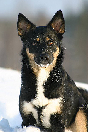 Maski on yleensä vahvin pennulla ja sillä on taipumusta hälventyä ja pienentyä koiran kasvaessa. Tällä koiralla oli 5 kk ikäisenä näin selkeä maski: